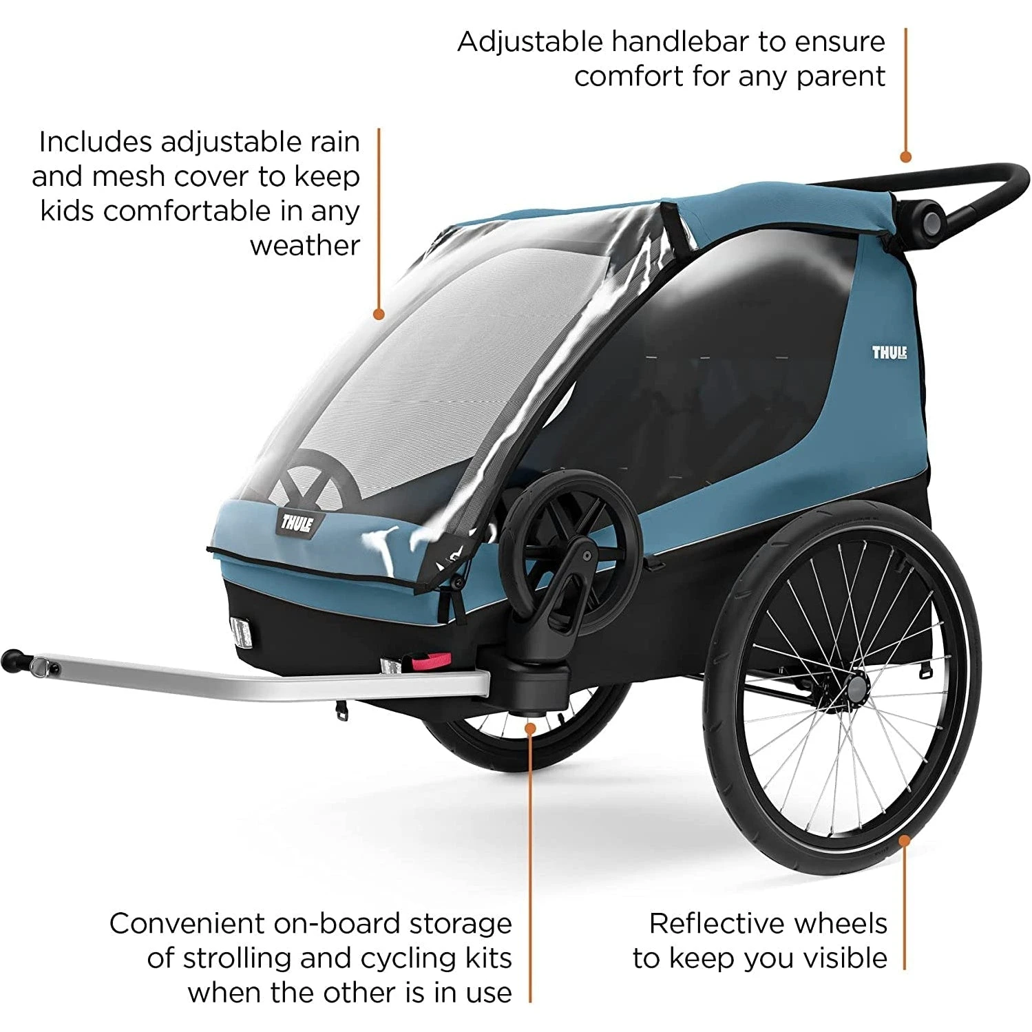 - Optional dog trailer kit accessory converts Thule Courier into a dog trailer (sold separately).