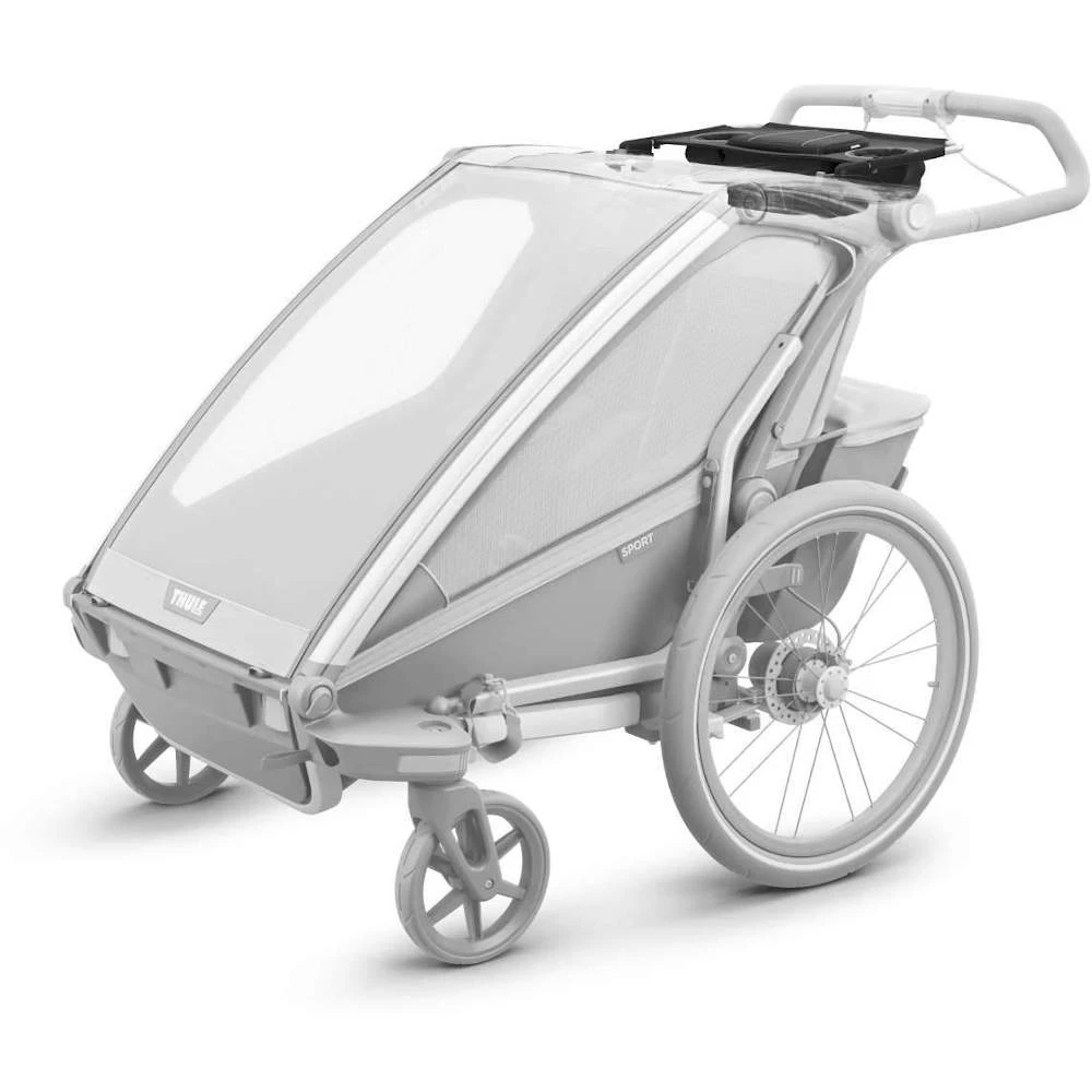 Add a zippered pocket and built-in cup holders to your Thule double child carrier.