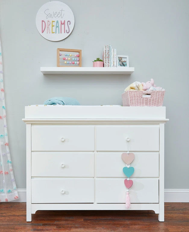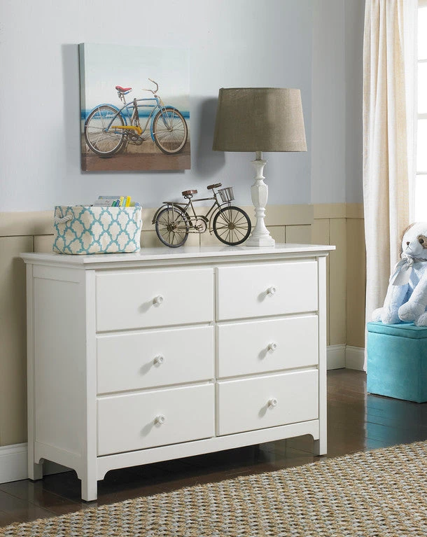 Classically styled, the 3000 Series Double Dresser is an uncomplicated look that is timeless in style. Simple lines and non-fussy styling make this the perfect piece for any nursery. This dresser comes with detailed assembly instructions and all the hardware and tools necessary to build quickly.