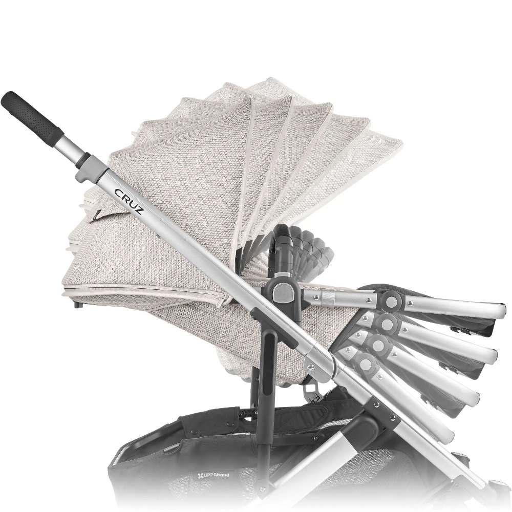 The UPPAbaby CRUZ V2 Stroller is the perfect stroller system, equipped with a full-size durable seat suitable from 3 months to 50 lbs. This seat can be used in parent or street-facing views, and offers multiple recline levels including complete lie-flat mode, allowing children to snooze off wherever they are. By adding the UPPAbaby CRUZ bassinet, or the Infant Snug Seat accessory, (both sold separately) the CRUZ stroller transitions into a suitable pram for newborns.