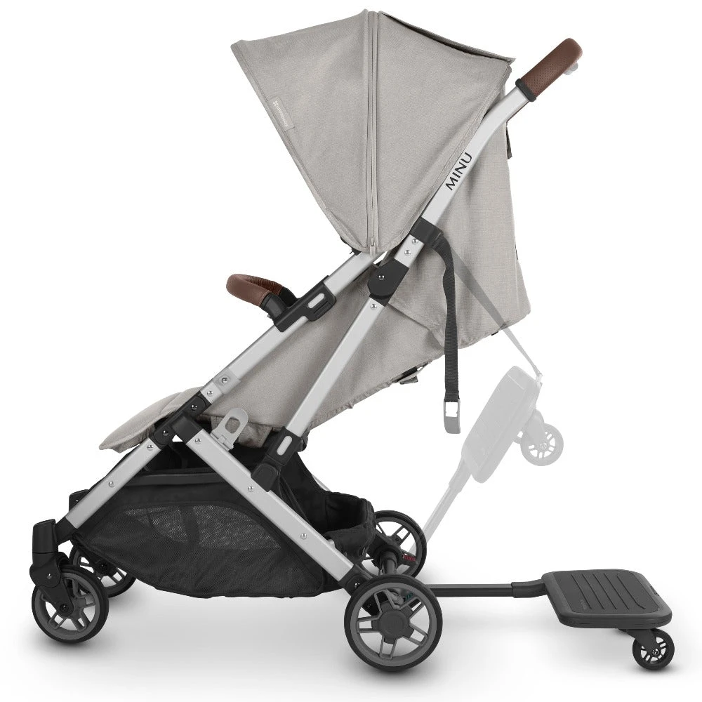 The PiggyBack ride-along board easily attaches to your Minu stroller to allow your toddler to join in the stroll, even when they are too tired to walk on their own.