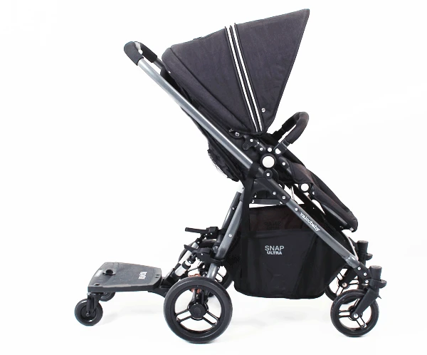Your toddler will love roving on this Rover Rider buggy board! Designed with incredible compatibility for all prams and strollers, this is the universal solution for traveling with two or more children. Your child can sit or stand as the optional seat comes with a harness and handlebar for a secure ride. Unlike other ride-on boards, the Rover Rider doesn’t rely on a break bar or a rear axle to attach to the stroller.