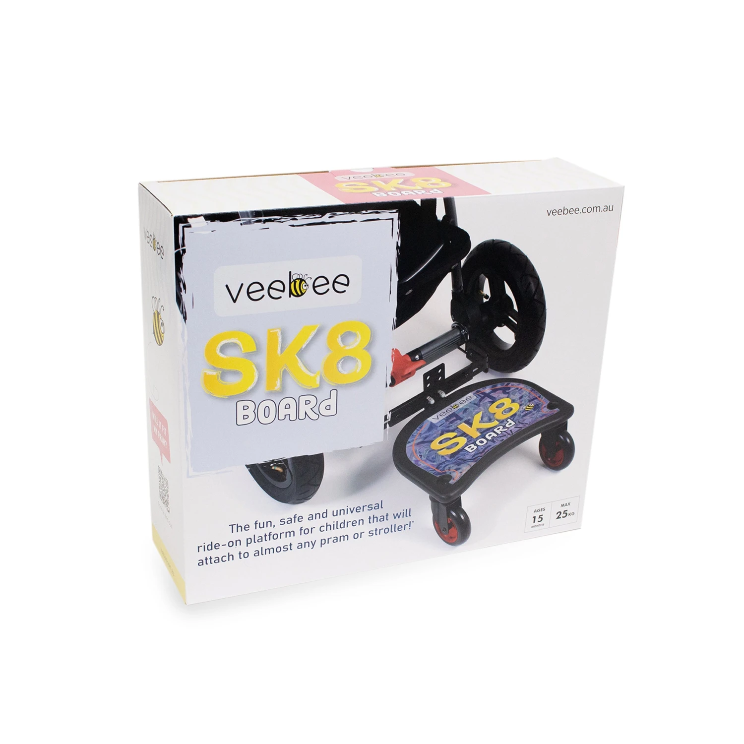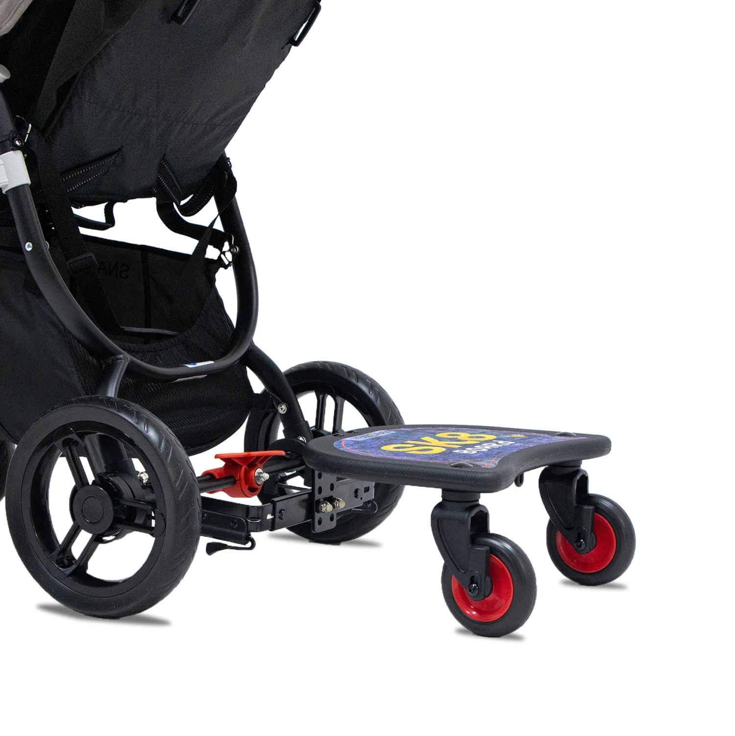 The Valco Baby Sk8 Board is a perfect accessory for outings with a baby and toddler. When your toddler’s little legs get tired, they can easily hop onto the board, and when they’re ready to stroll with you again, you can conveniently lift it out of the way. It features a non-slip surface and universal adapters. The easy height adjustment plate makes the SK8 board adapt to suit most strollers and prams with a rigid rear axle or tube for the quick-release clamps to attach to.