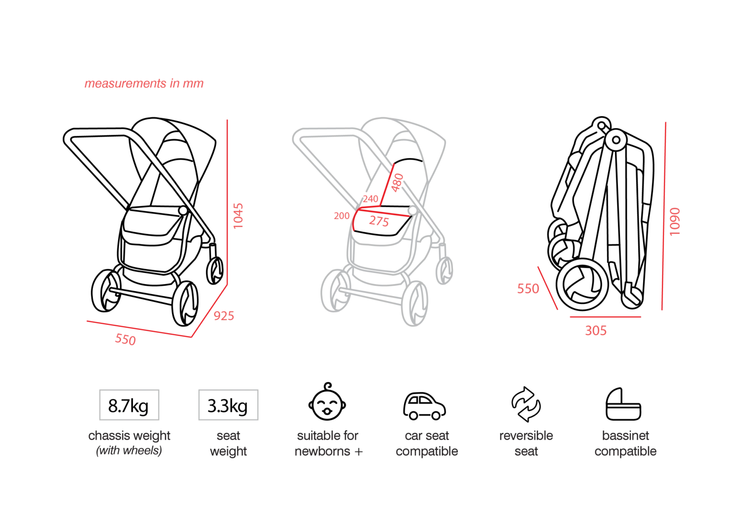 - Bonus boot cover with an inbuilt mosquito net that makes the stroller cozy for newborns.